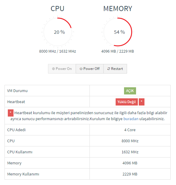 Sanal sunucunuzda Heartbeat kurulu olup, olmadığına müşteri panelinizden sanal sunucu detaylarına geçiş yaparak görebilirsiniz.